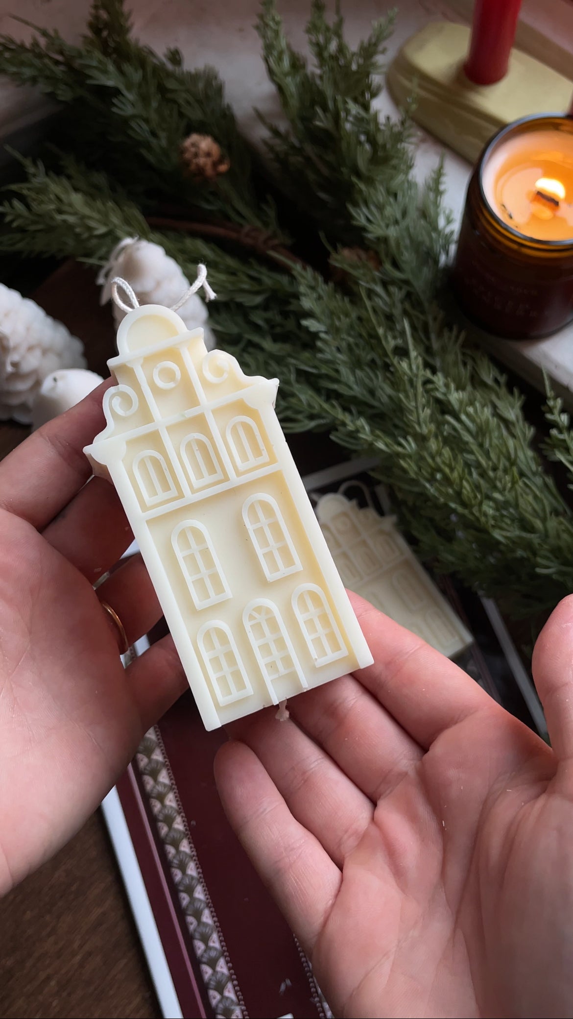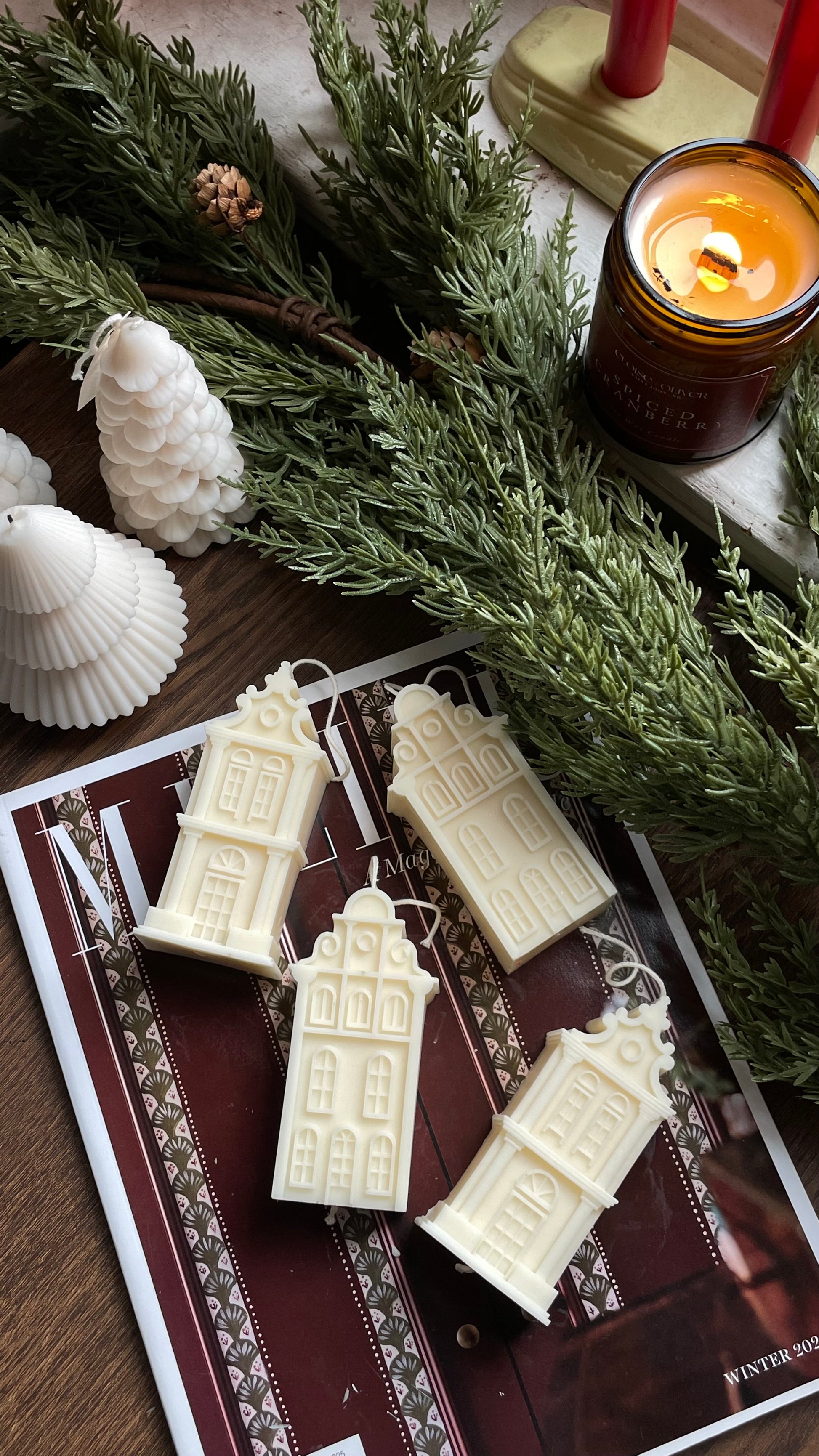 Inspired by the iconic narrow houses that line the Netherlands' picturesque waterways. Hand-poured from pure, unscented soy wax right here in Canada, these charming pieces doubles as functional décor—perfect for adding warmth and character to any room. These delightful candles captures the cozy spirit of a European Christmas village.